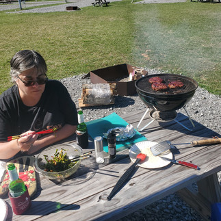 There were days of great food as well. I even took a shot at the grill for the first time. Bacon with asparagus and Burgers with mushrooms and onions.